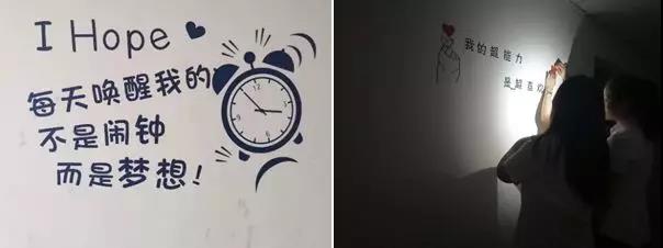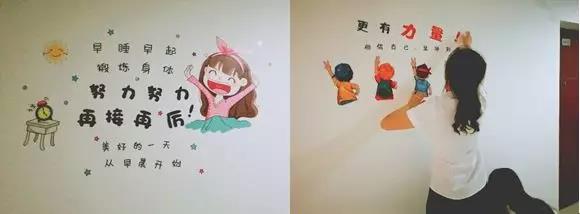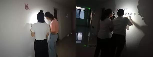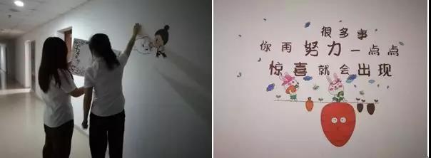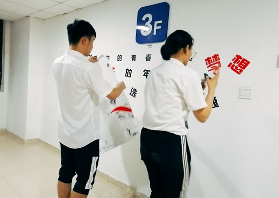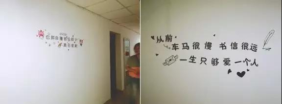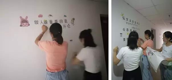 (經(jīng)過(guò)四個(gè)小時(shí)的通力合作,宿舍的白墻已經(jīng)換上美美的新裝啦)